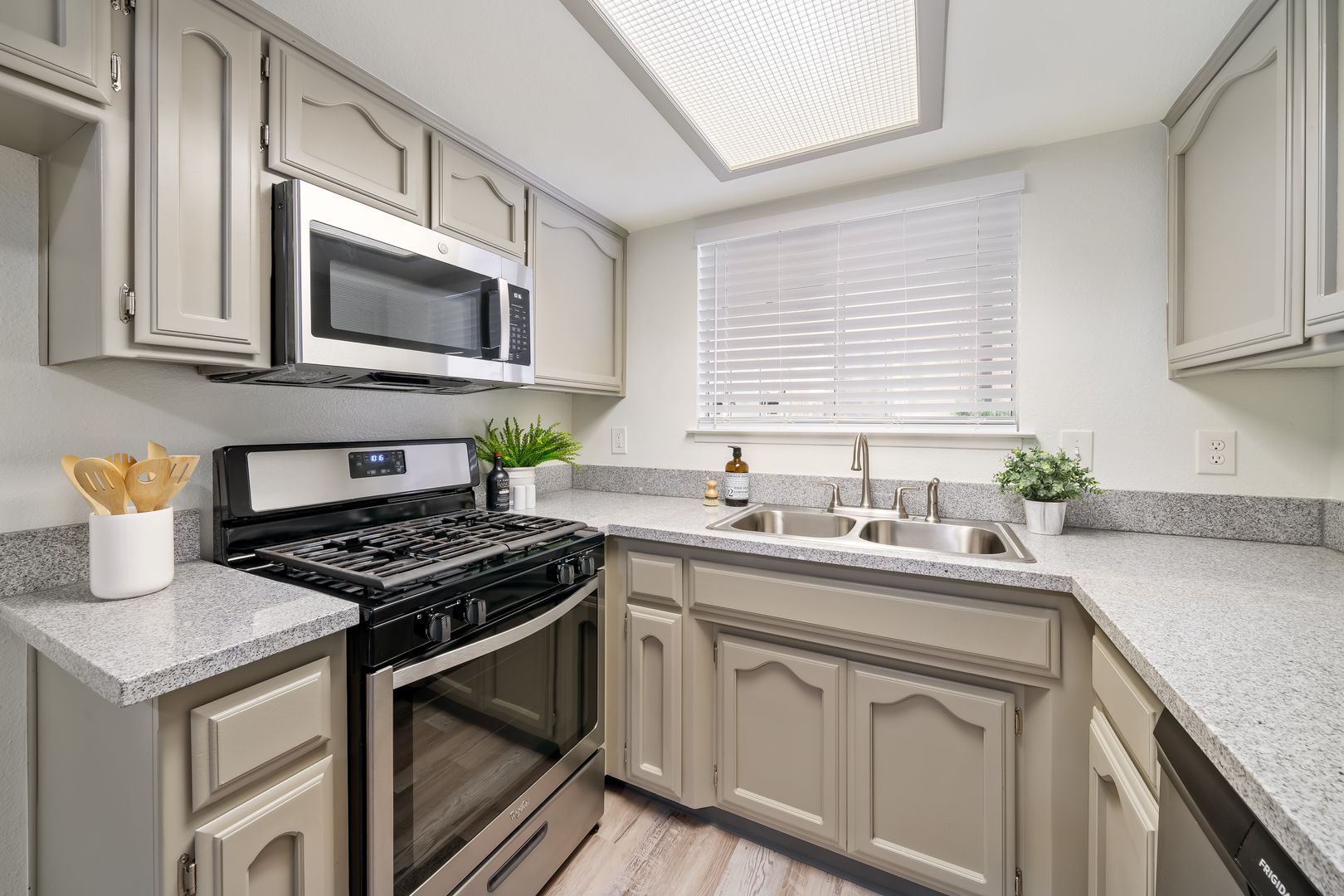 The open-concept living area is perfect for both relaxing and entertaining. It seamlessly connects the living, dining, and kitchen spaces, allowing for a fluid and inviting atmosphere. The modern kitchen comes with stainless steel appliances, including a refrigerator, dishwasher, microwave, and a sleek range. With plenty of cabinet and counter space, it’s perfect for preparing meals and hosting gatherings.