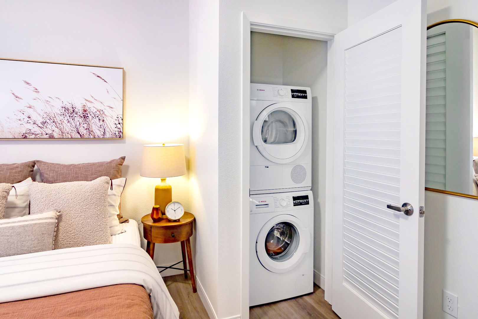 This studio apartment includes a full bath, electric stove/range, dishwasher, refrigerator and in unit washer/dryer (Additional Fee)