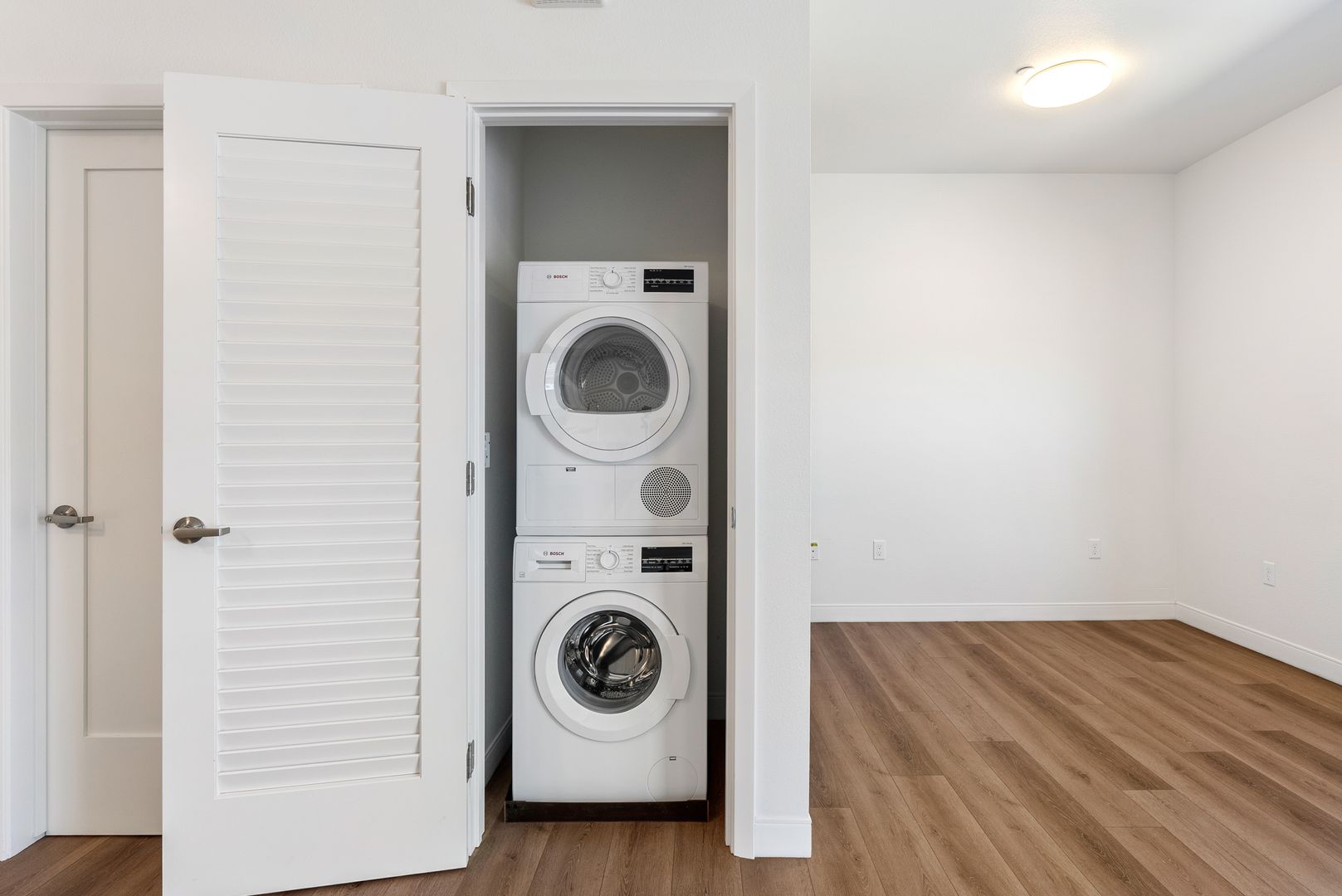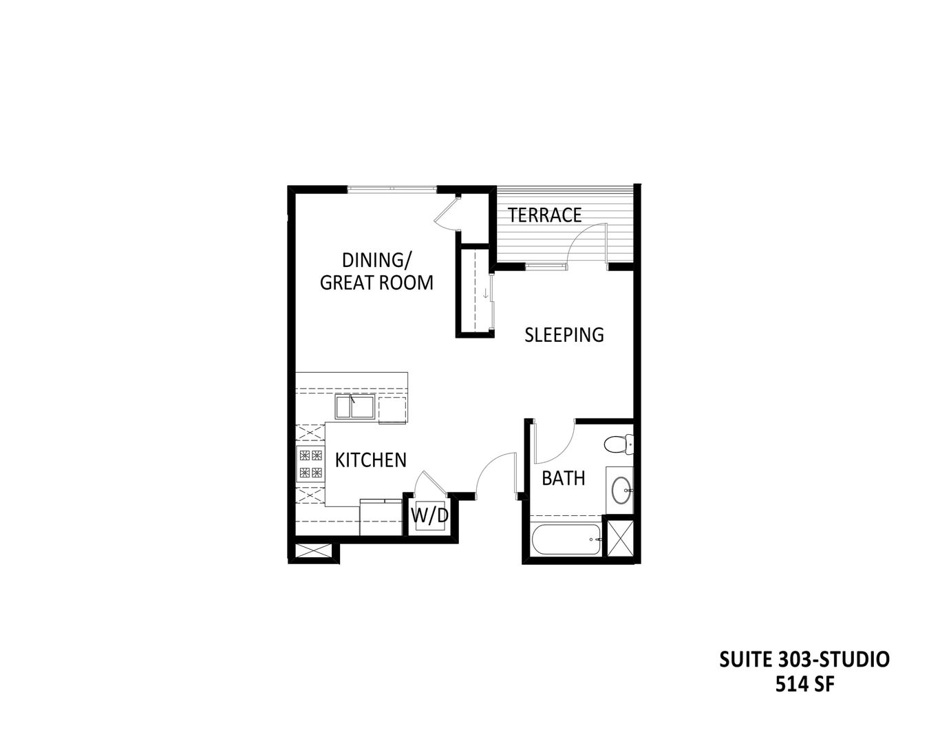 This studio apartment includes a full bath, electric stove/range, dishwasher, refrigerator and in unit washer/dryer (Additional Fee)